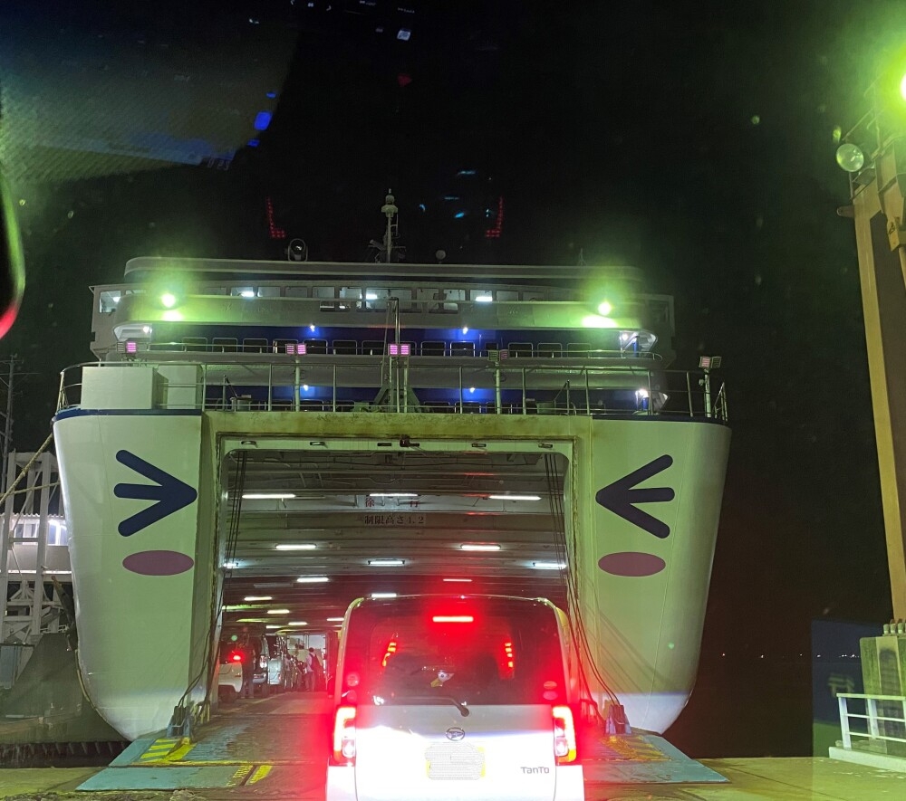 フェリーに乗り込む際の写真です。にゃんこフェリーという名称に似合う、可愛らしくて旅の始まりにピッタリな1枚です(*´ω`*)