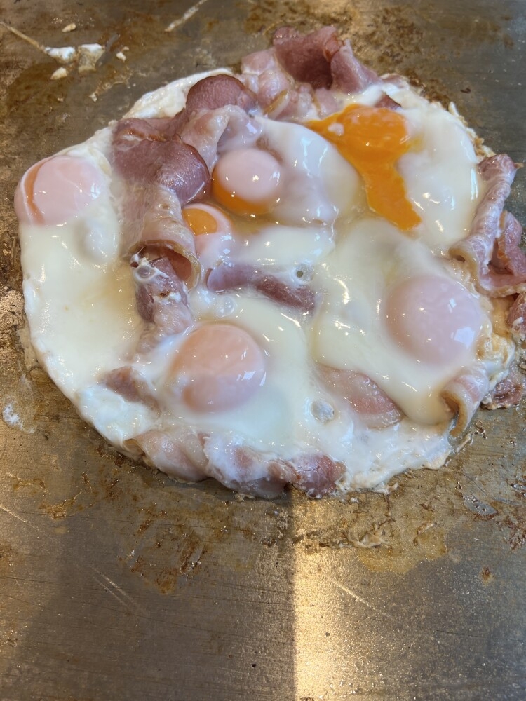 そして隣のテーブルで食事をしていたグループが頼んでいたハムエッグがこれまた美味しそうだったので、お願いして特別にこちらのテーブルにもいただけることに!!